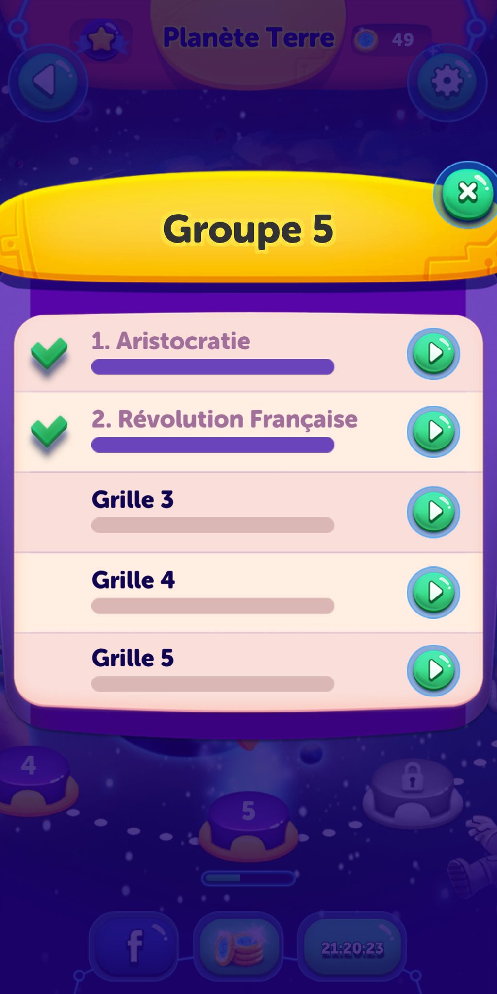 Walkthrough de la planète terre, groupe 1, grille 5 de cody cross.
